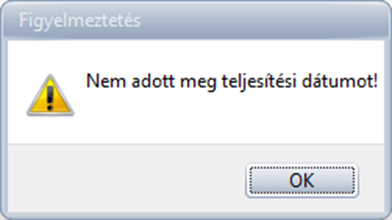 A módosítás során amennyiben a teljesítési dátuma véletlenül üres állapotban maradt volna a könyvelés indításakor, akkor a rendszer egy figyelmeztető üzenetet küld és a kijelölt számlákat addig nem könyveli le, míg talál nem megfelelően kitöltött sort.