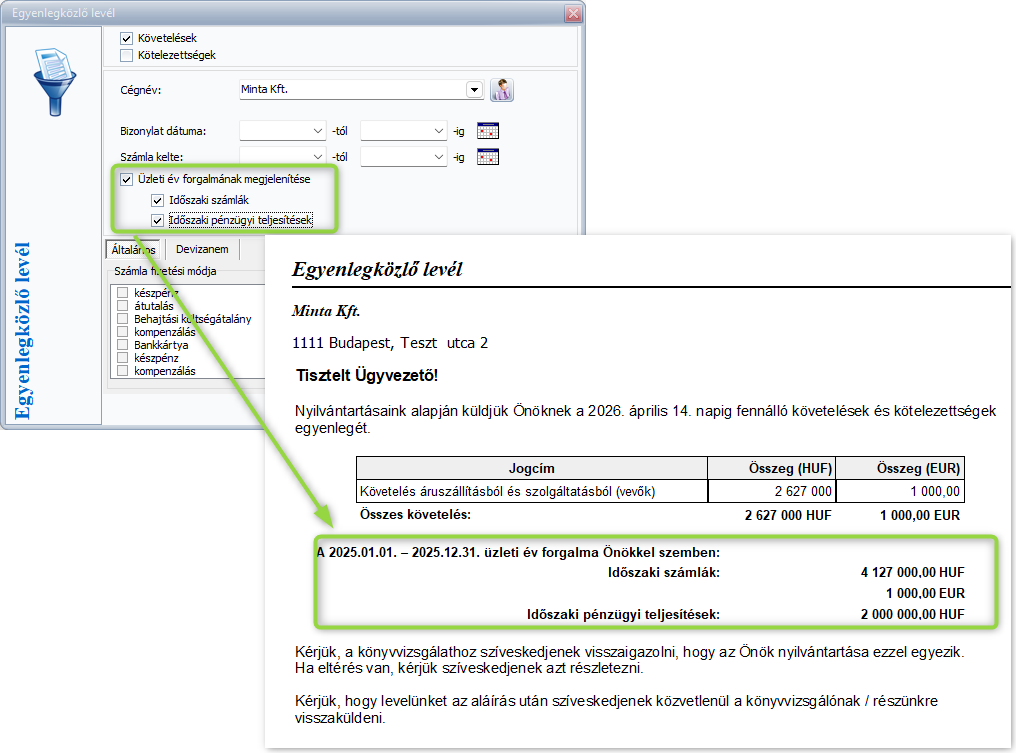 Egyenlegközlő levél készítésének részletesebb leírása itt érhető el.